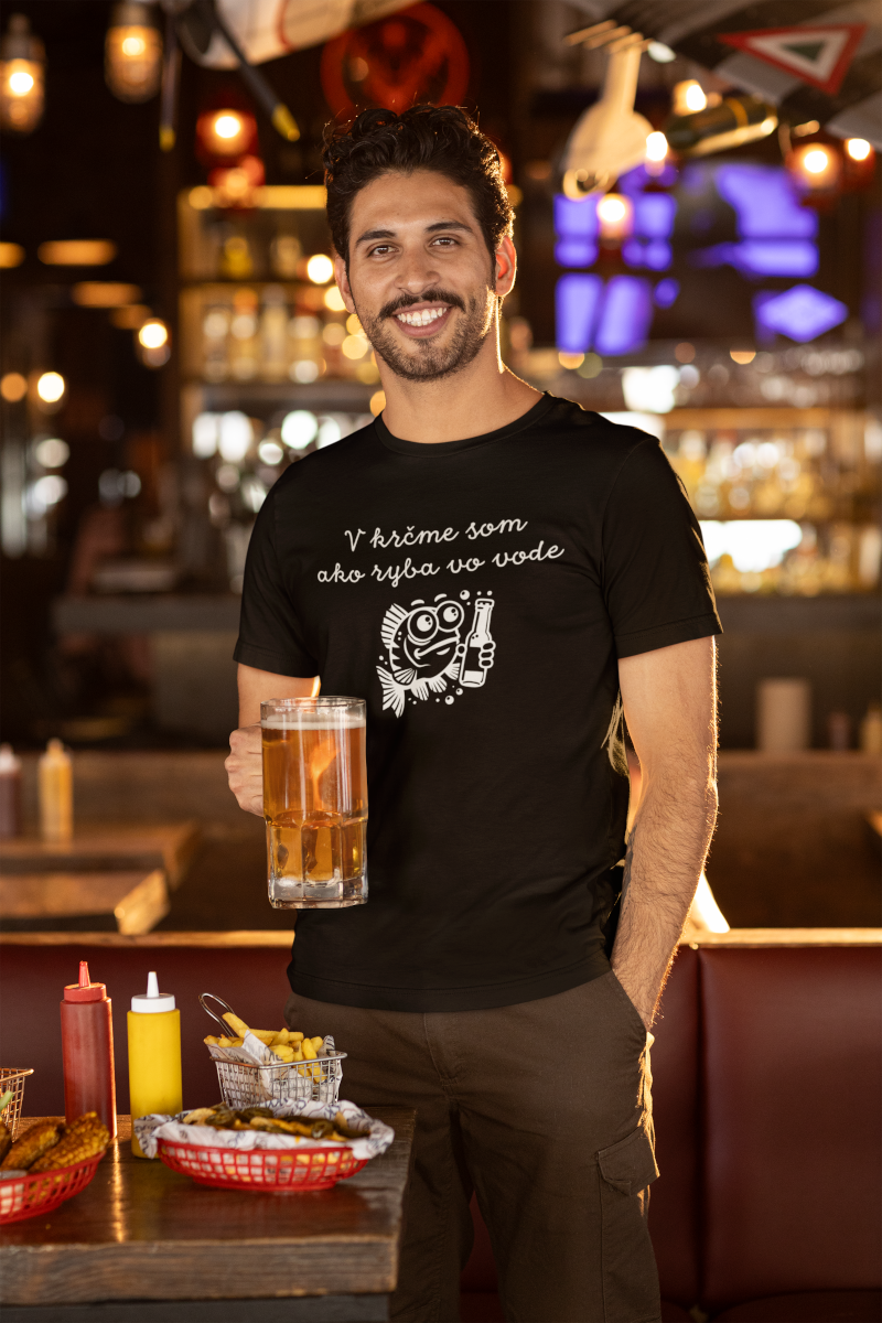 Keď sa cítiš vo výčape ako doma – doslova! Tento veselý dizajn so šialenou rybou a pivom je perfektný darček pre všetkých milovníkov zábavy a piva.